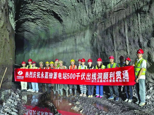 浙江永嘉抽水蓄能電站是浙江省“十四五”期間重點核準開工的建設項目,目前,永嘉抽水蓄能電站500千伏出線洞全線貫通,為后續電站500千伏高壓電纜的敷設與送電通道的形成奠定了堅實基礎,標志著電站地下廠房系統與外界電網的連接“咽喉”工程取得決定性勝利。